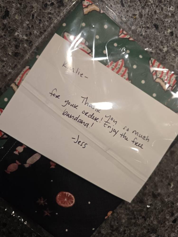 Cutest bandana ever!! Seller was super kind and quick to reply to my message to ask if we’d get this in time for Christmas. Shipped the next day and received in plenty of time! Thanks so much ❤️