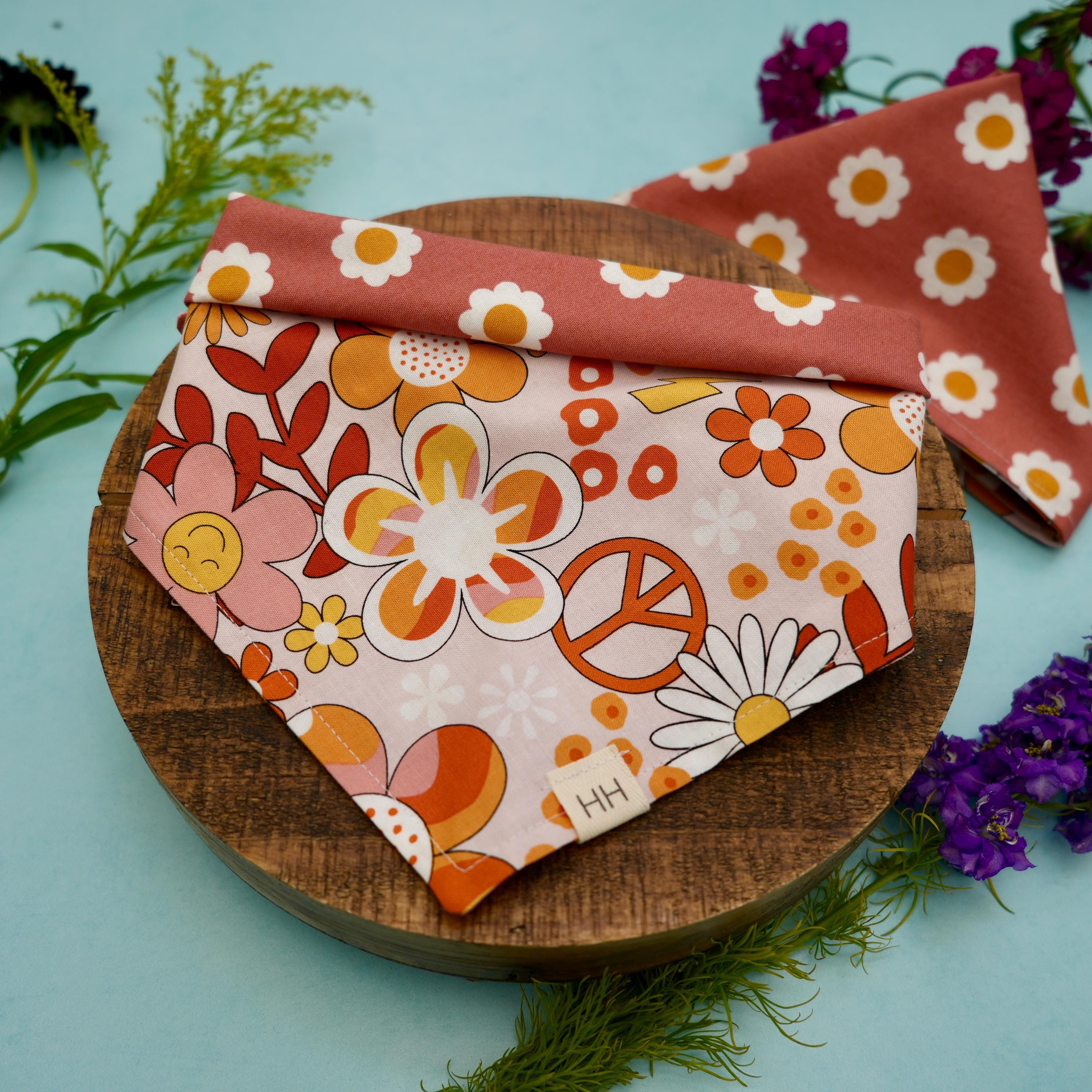 Sizing: Use a soft tape measure to measure in inches around the widest part of your dog’s neck, or collar. If in between sizes, or if your animal has fluffy fur, we suggest sizing up. Bandanas can also be rolled over if too big. If you have any questions on sizing please reach out and we will lead you in the right direction.