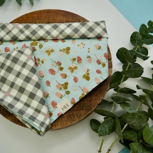Sizing: Use a soft tape measure to measure in inches around the widest part of your dog’s neck, or collar. If in between sizes, or if your animal has fluffy fur, we suggest sizing up. Bandanas can also be rolled over if too big. If you have any questions on sizing please reach out and we will lead you in the right direction.