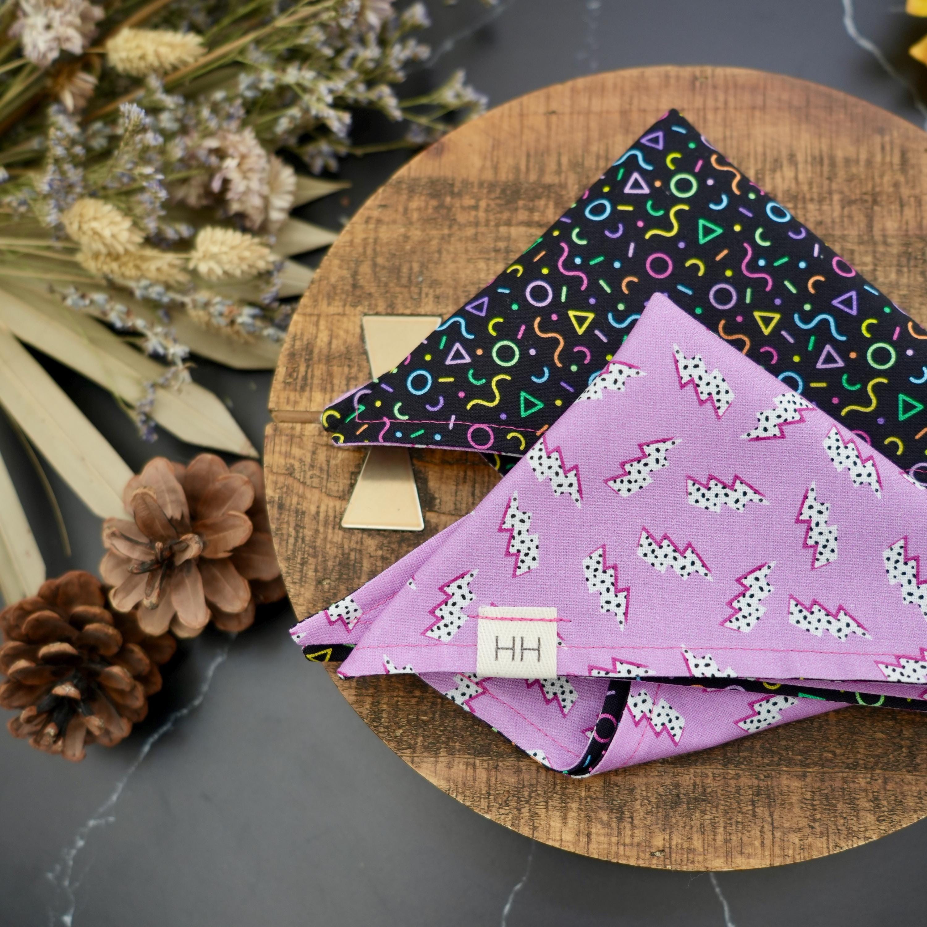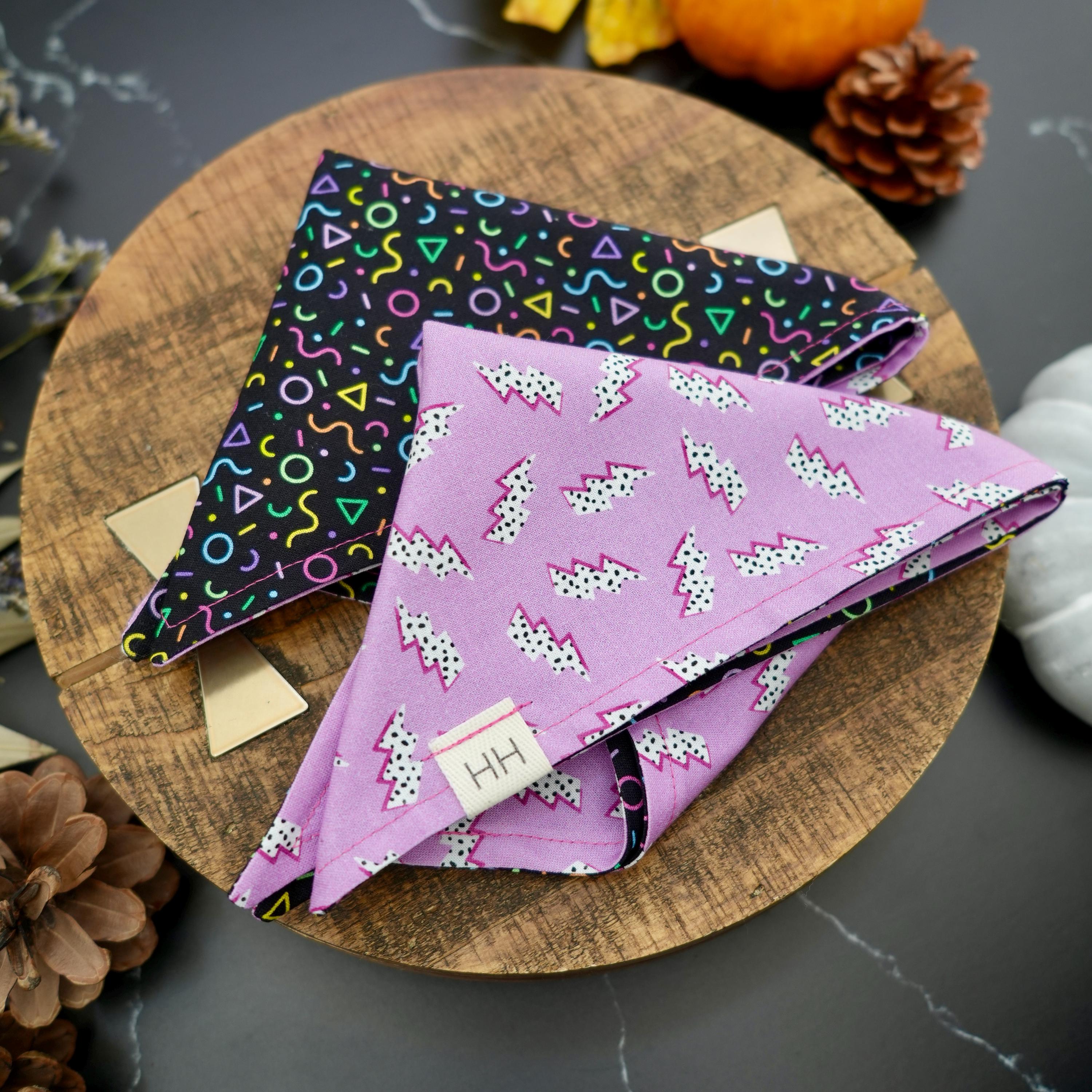 Sizing: Use a soft tape measure to measure in inches around the widest part of your dog’s neck, or collar. If in between sizes, or if your animal has fluffy fur, we suggest sizing up. Bandanas can also be rolled over if too big. If you have any questions on sizing please reach out and we will lead you in the right direction.