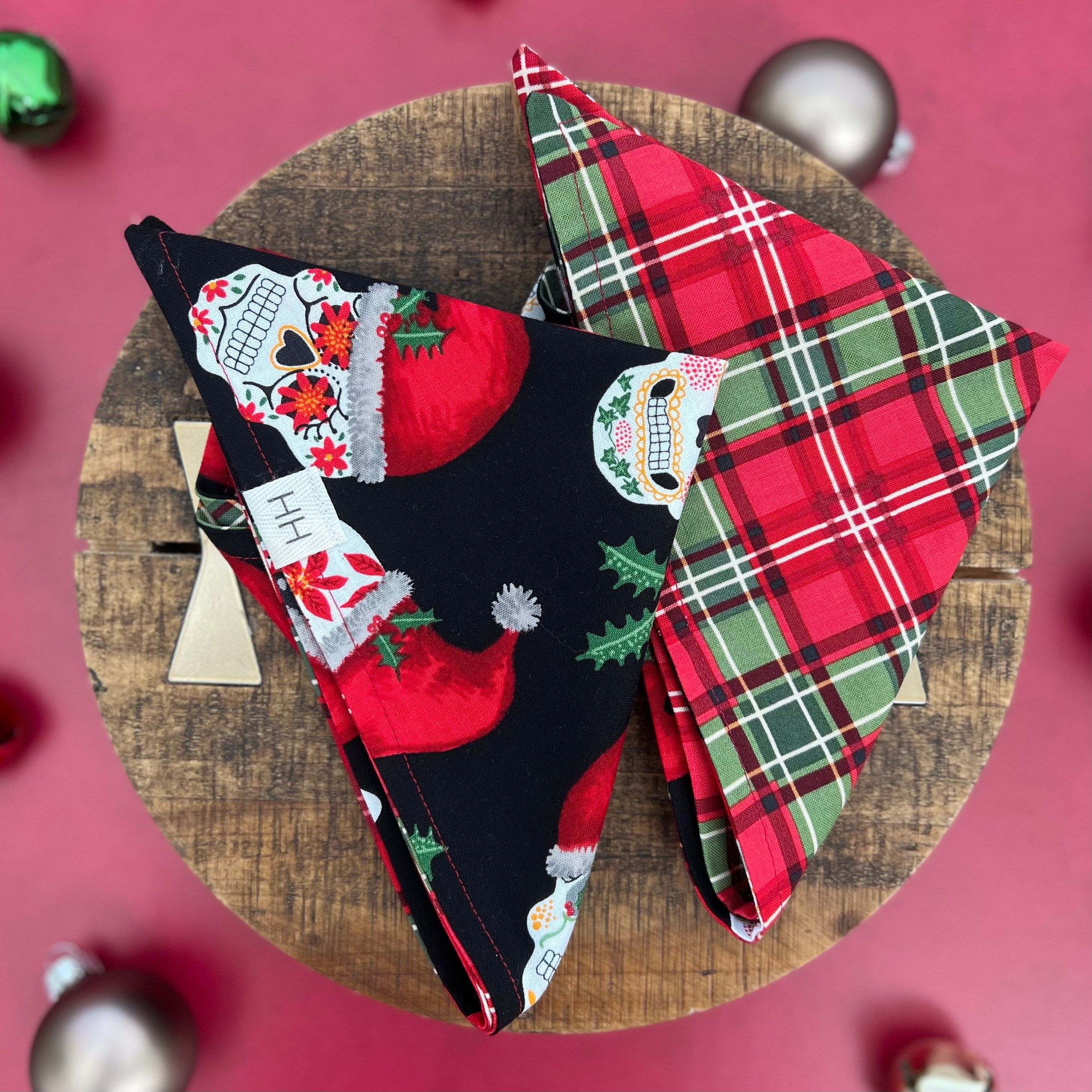 Sizing: Use a soft tape measure to measure in inches around the widest part of your dog’s neck, or collar. If in between sizes, or if your animal has fluffy fur, we suggest sizing up. Bandanas can also be rolled over if too big. If you have any questions on sizing please reach out and we will lead you in the right direction.